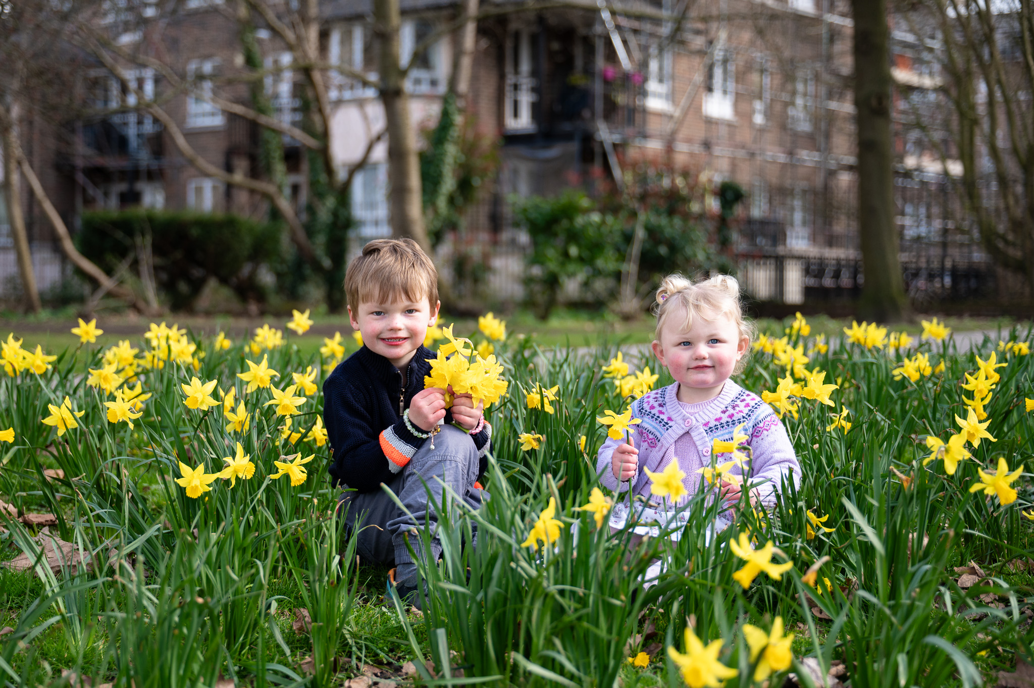 For family photos, daffodils are fantastic because they bring energy and colour into the images. Kids can run through the open spaces while the flowers create a vibrant foreground or background.